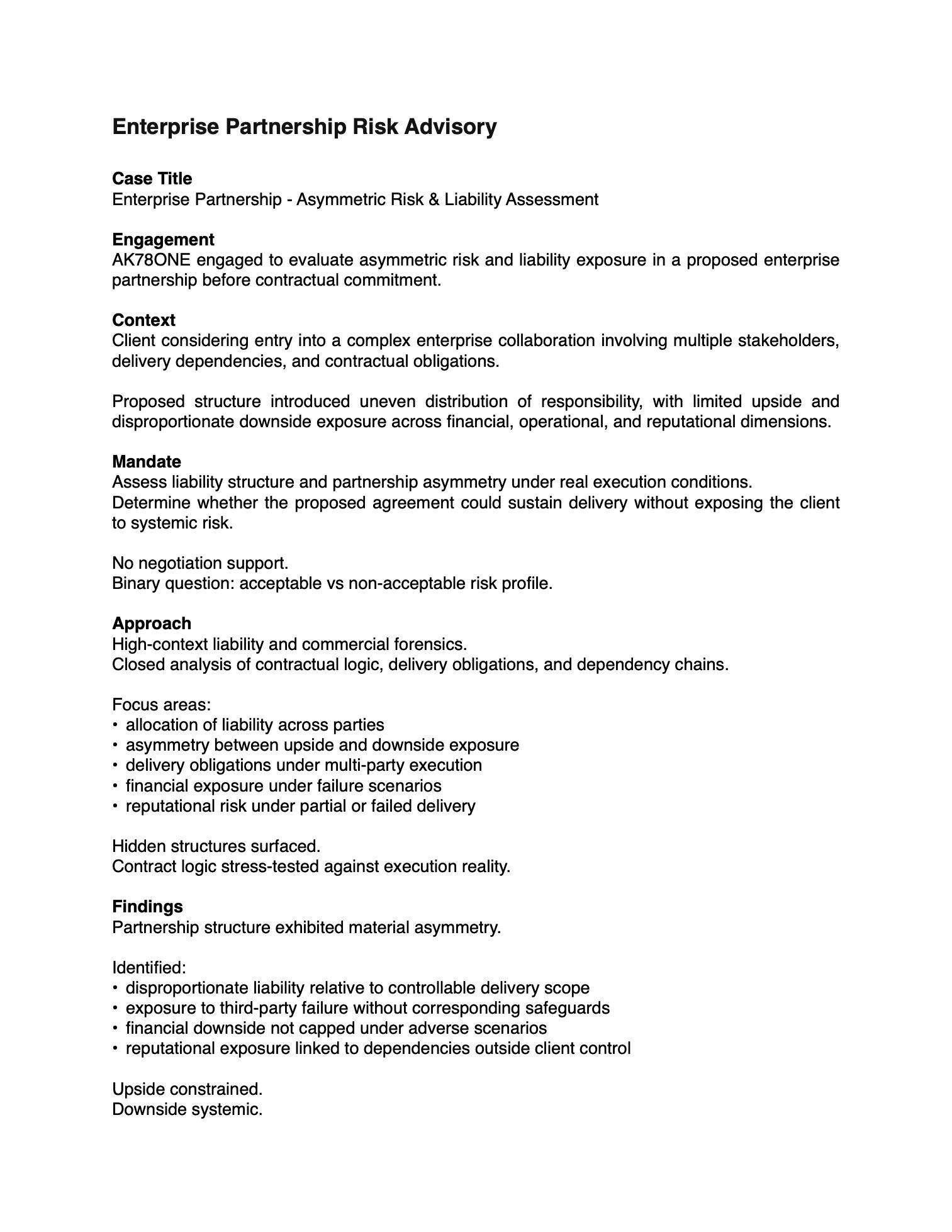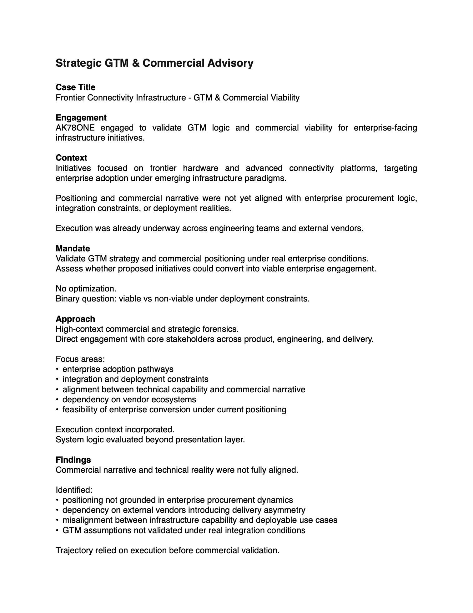 © 2026Disclaimer: AK78ONE provides strategic advisory only. Nothing on this site constitutes legal, financial, or investment advice. Engagement does not create fiduciary obligation. Past engagement outcomes do not guarantee future results. All decisions remain the sole responsibility of the client.